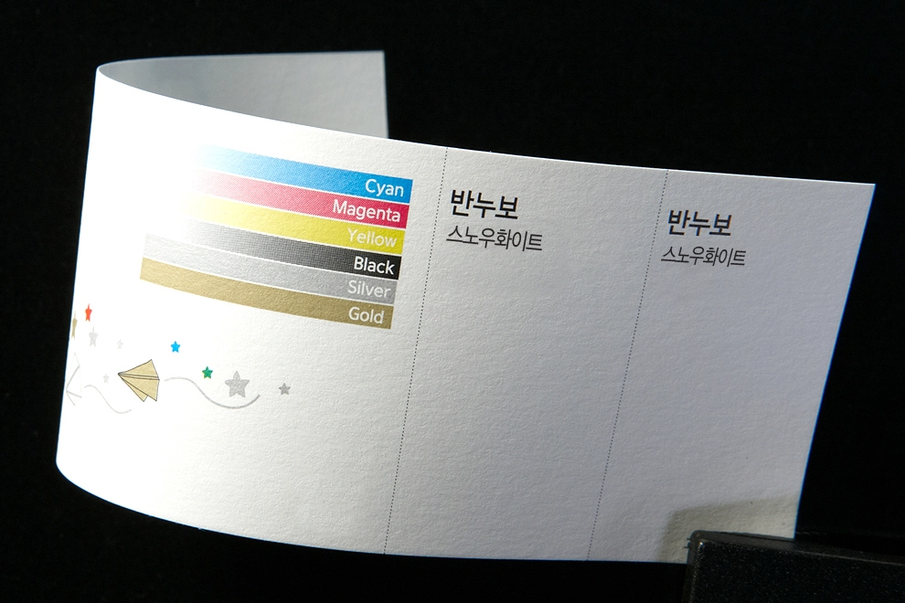 디지털박명함은 금박(유광/무광), 은박(유광/무광) 네 가지로 가능합니다. 또한 후가공 오시, 미싱, 형압, 도무송, 타공, 귀도리 가공이 함께 가능합니다.