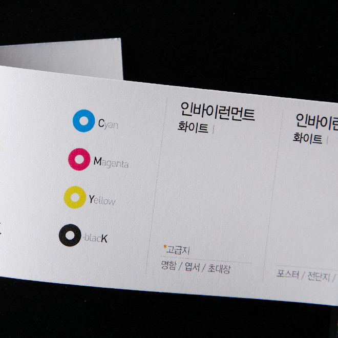 2. 별색 및 팬톤컬러 등은 모두 CMYK컬러로 변경하여 접수해 주세요. 인쇄 시 색상표현이 안될 수 있으며 이로 인한 재인쇄는 불가합니다.